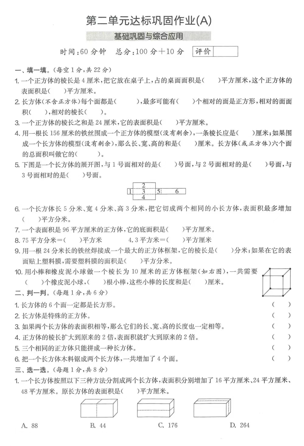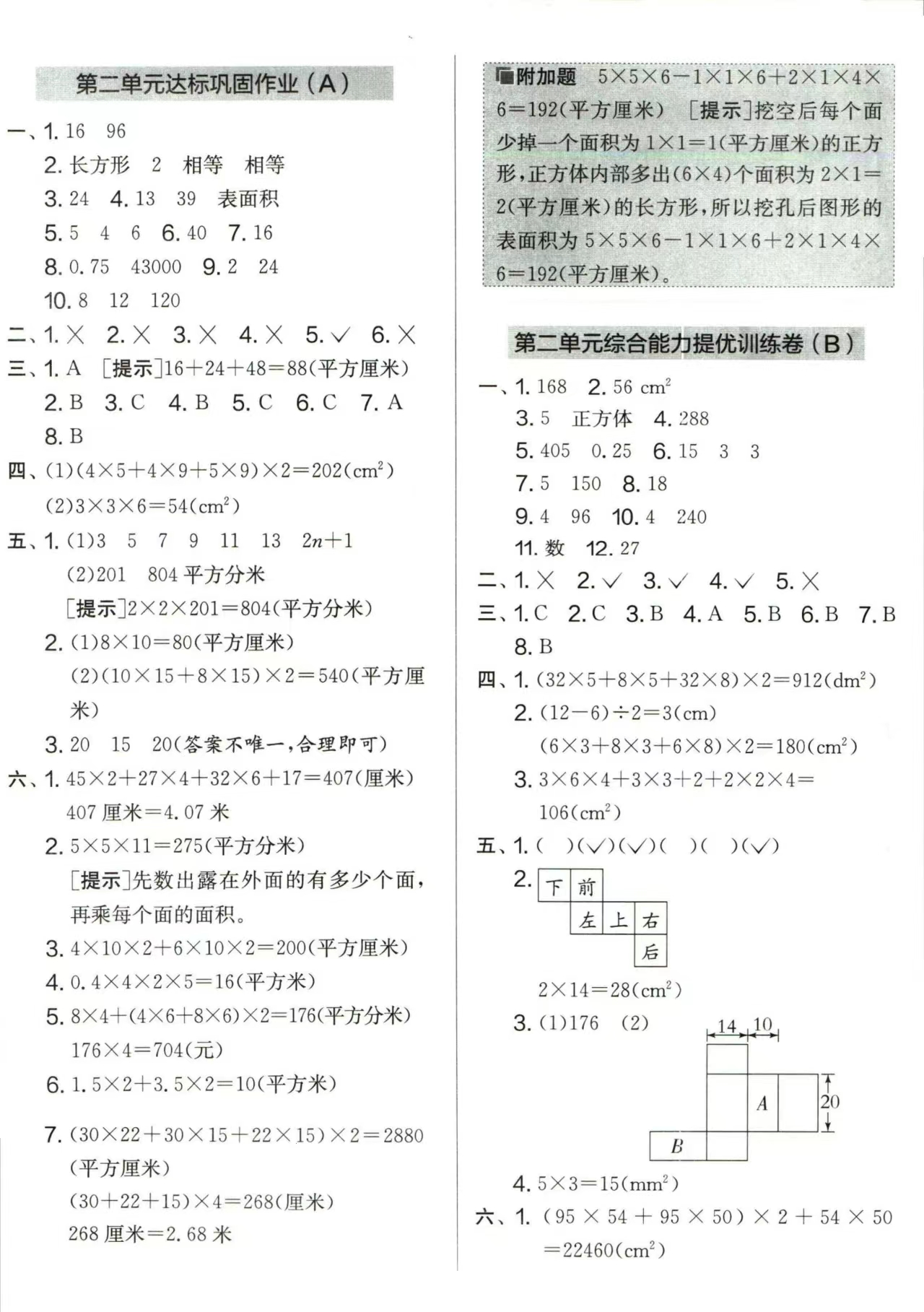 小学数学,五(下)第二单元测试AB卷——成都三心学堂家教网